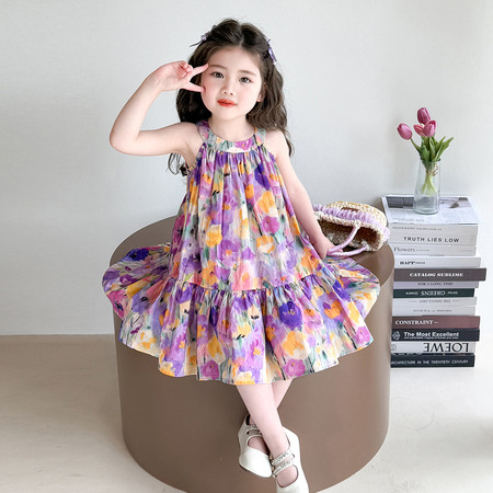 益众乐童装&紫色棉布挂脖裙
